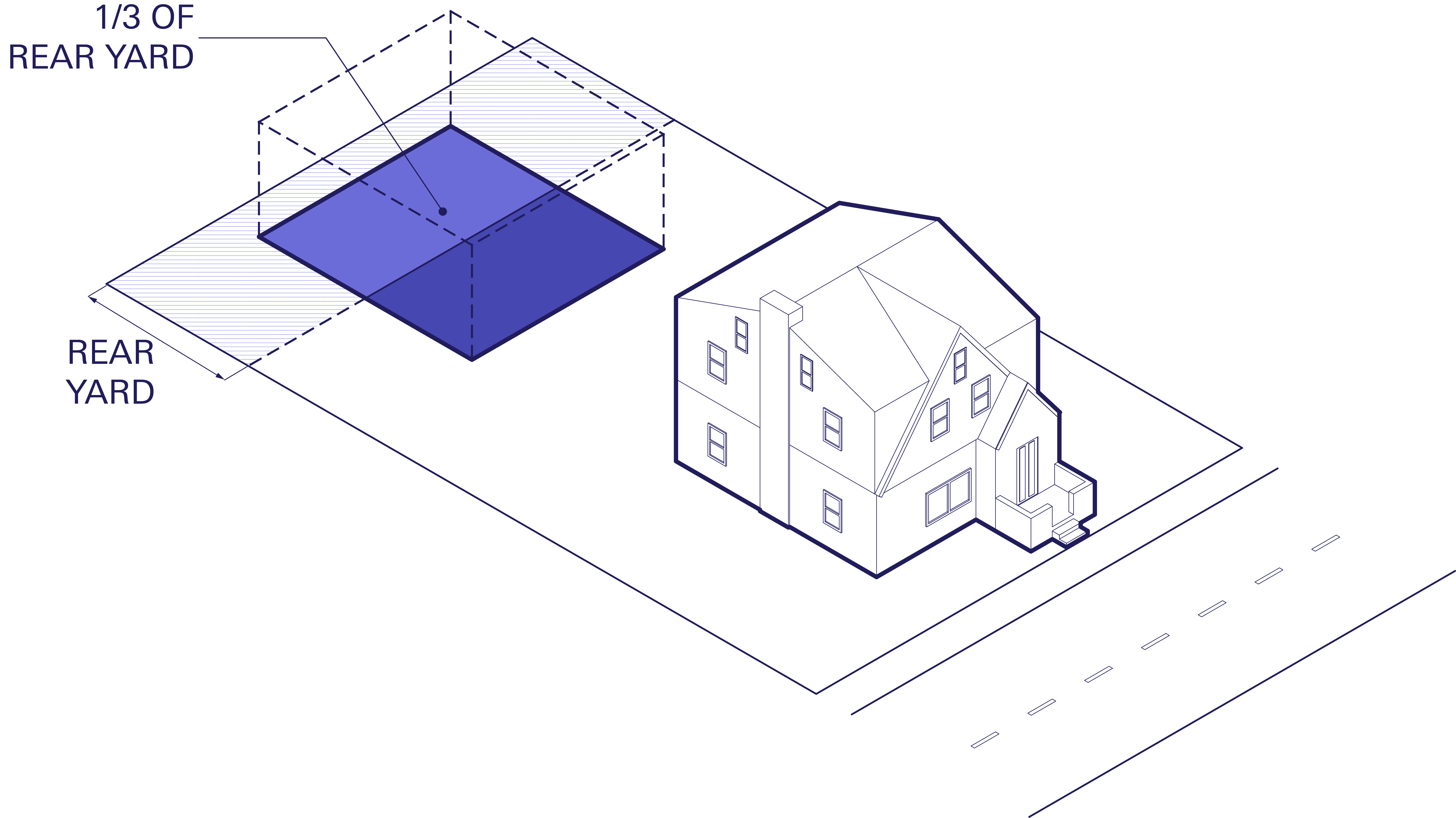 The rear yard is the open space at the back of your property measured 20 feet from your rear lot line. In some cases, the rear yard is measured 30 feet from your rear lot line depending on the height of the primary building or lot size. |