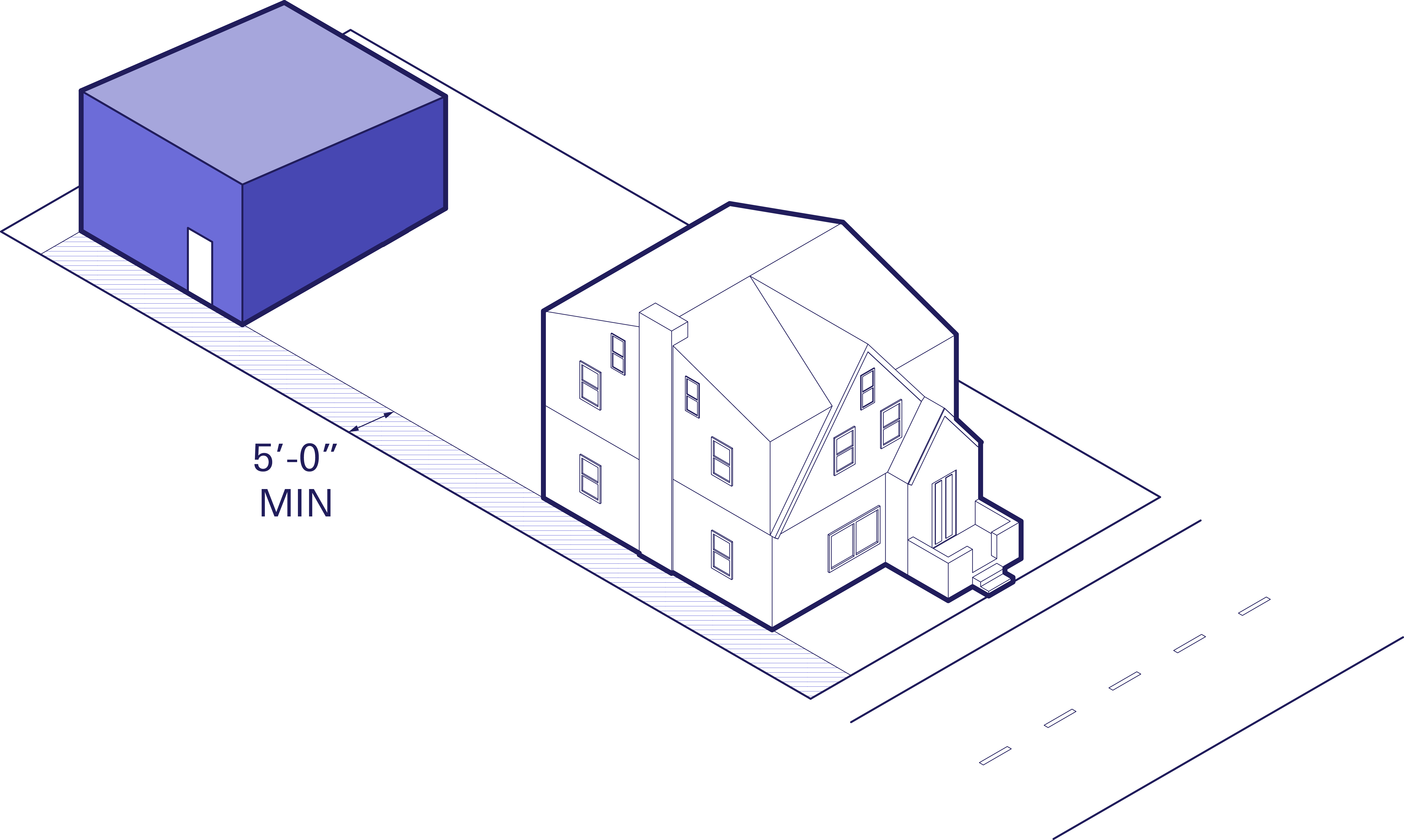 The main entrance of an ADU must be within 100 feet of the curb line so the fire department can reach it. A clear, unobstructed 5-foot-wide access path, or egress, is required. |
