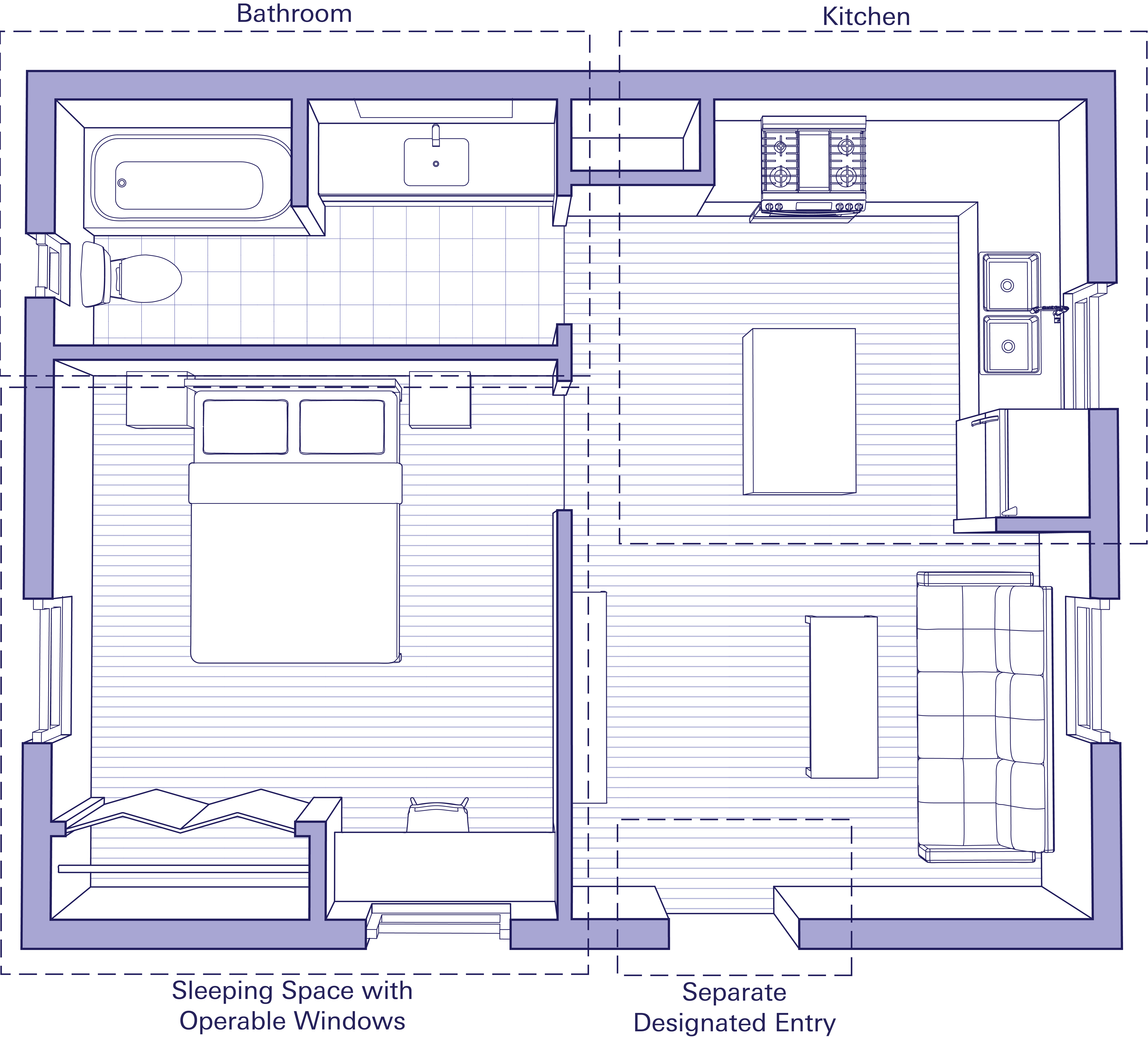 Beyond zoning regulations, the NYC Building Construction Codes set specific safety and habitability standards that every ADU must meet. These include requirements for ceiling height, natural light and ventilation, fire access, and separate entrances. Appendix U of the NYC Building Code was created to establish rules specific to ADUs. Sections such as U101.2 General Conditions set out baseline requirements for making ADUs safe and code compliant. Appendix U also outlines standards for: