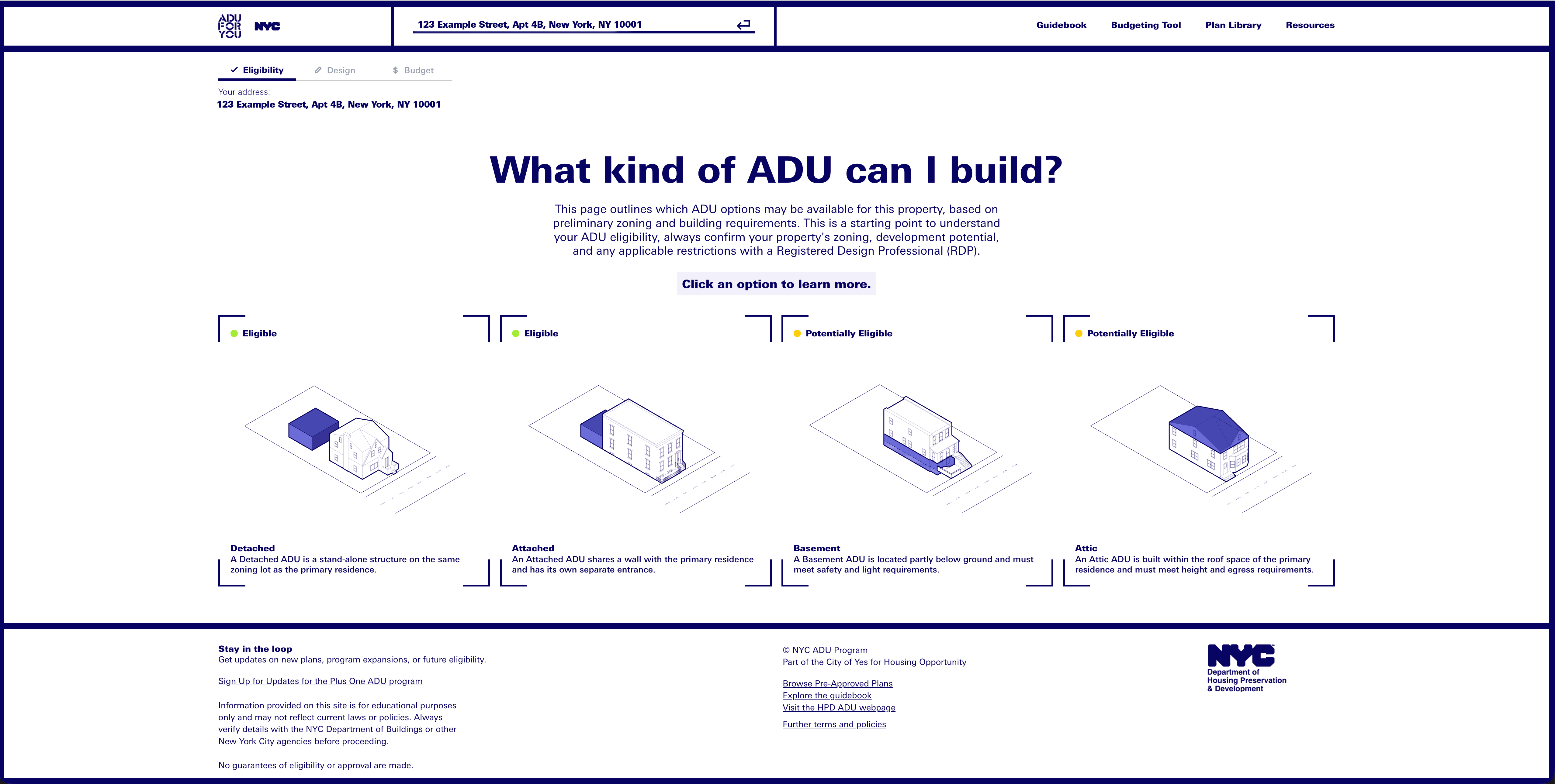 Look up your addressBefore diving into design ideas, check whether your property is eligible for adding an ADU. In NYC, your eligibility depends on a few factors. Is your home a one- or two-family residence? Does it fall within a flood hazard zone? Use the Eligibility Lookup Tool to find out what is allowed on your lot. Understand your available square footageOnce you know that you're eligible to build an ADU, the next step is figuring out how much space you can use and checking whether you have already maxed out your buildable zoning floor area. For attic or basement units, the size usually fits within the area of your existing floor. For Rear-Yard ADUs, zoning rules decide the size of the footprint. Use the Eligibility Lookup Tool to estimate your buildable area. You can also check the NYC Department of Buildings (DOB) rules and regulations page to learn how to calculate the floor area yourself. Don’t forget to verify the dimensions of your rear yard or home. |
