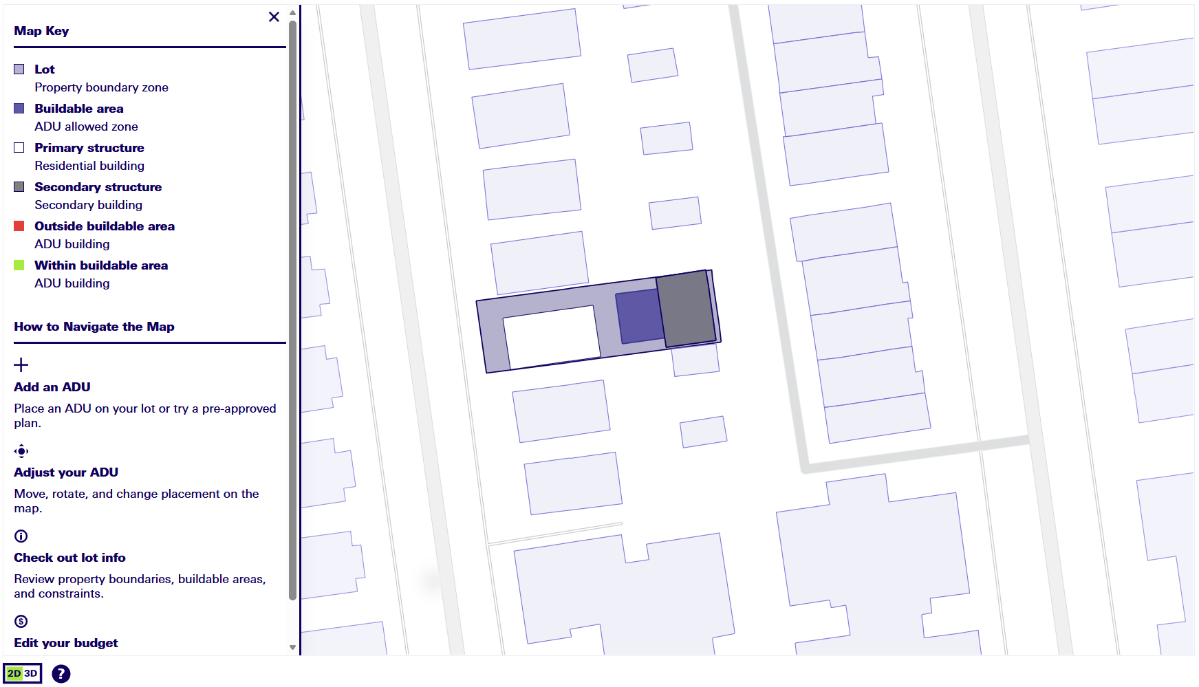 2D Lot view in ADU for You Eligibility Lookup Tool